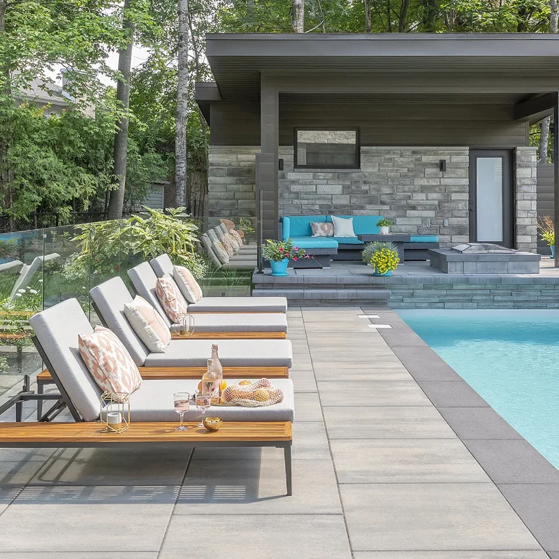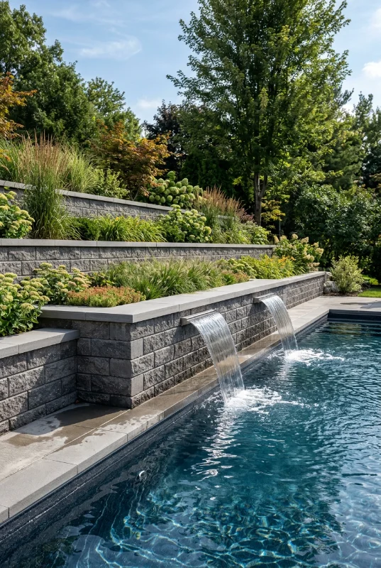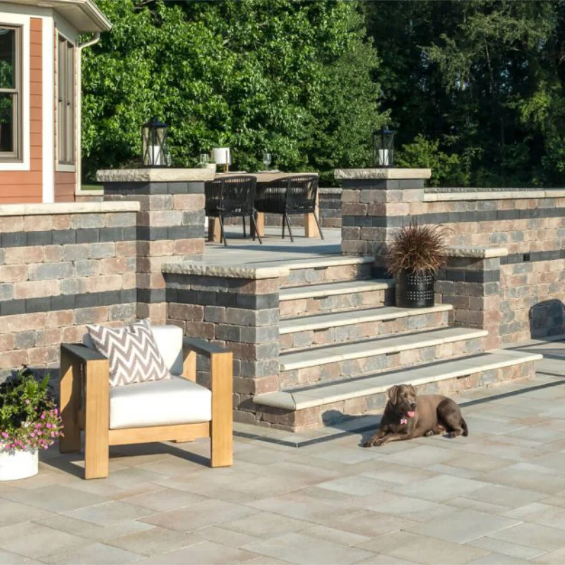 River Rock Pools designs and installs hardscape patios, pool coping, walkways, raised planters, and retaining walls throughout Windsor-Essex. We work with products from Techo-Bloc, Unilock, and Rinox, three of the most trusted names in Canadian hardscape.
